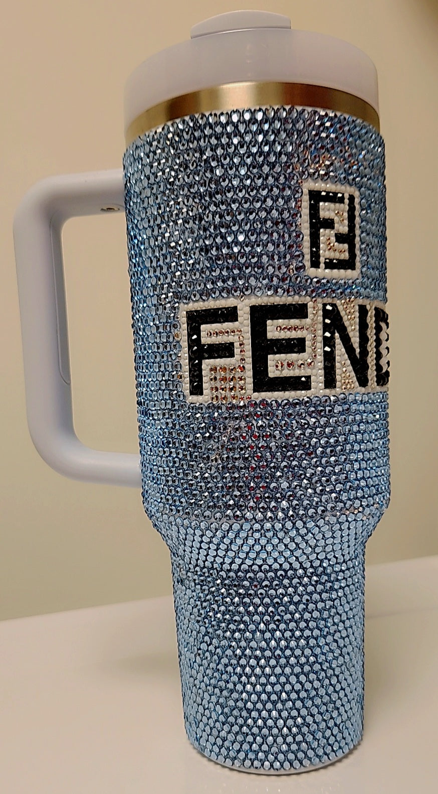 Turn heads while staying hydrated with this stunning 40oz tumbler, fully covered in sparkling rhinestones for a dazzling finish. Designed in a sleek powder blue shade, it combines fashion and function perfectly. With premium double-wall insulation, your drinks stay ice-cold for hours or piping hot when you need them. The large 40oz capacity means fewer refills, and the easy-carry handle makes it perfect for life on the go.